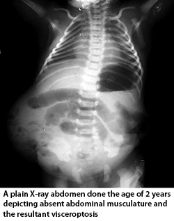 The prognosis in patients with prune belly syndrome varies. The spectrum runs from stillbirth to undescended testicles with a minimal degree of abdominal wall laxity.
