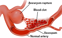Blood sprayed around the base of the brain can also cause vasospasm. Depending on the severity of the rupture and other factors, ruptured aneurysms can heal and be treated. Click on treatment to learn about the surgical and non-surgical procedures used to treat them.